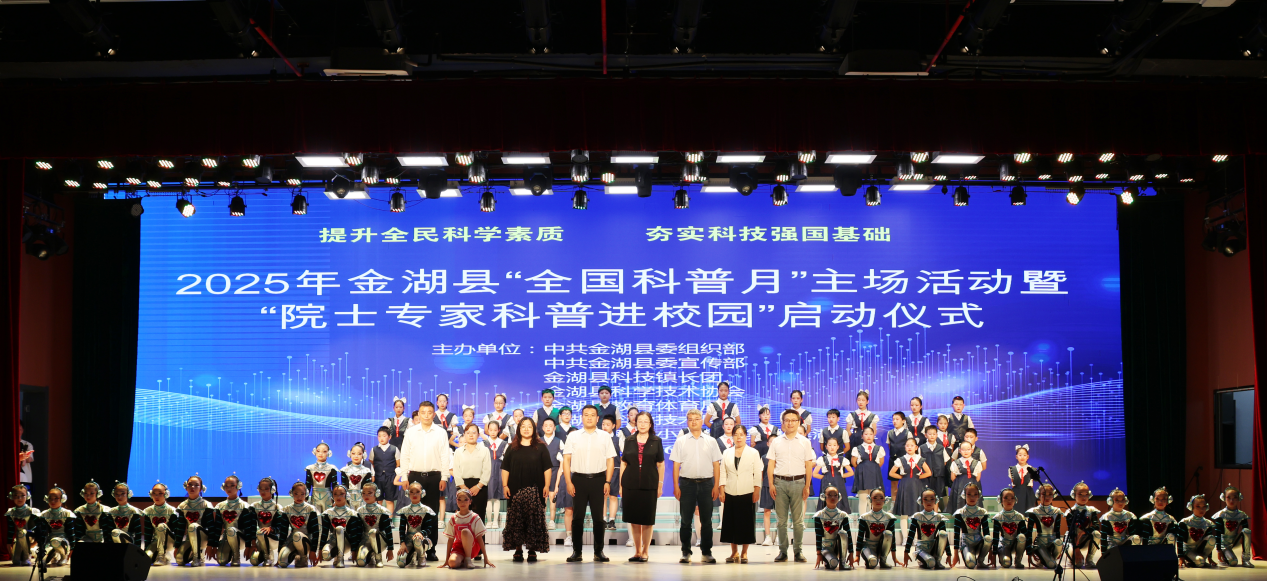 今年9月是首个“全国科普月”。9月16日,金湖县2025年“全国科普月”主场活动暨“院士专家科普进校园”启动仪式在金湖县实验小学教育集团滨湖校区举行。本次活动由金湖县委组织部、金湖县委宣传部、金湖县科技镇长团、金湖县科学技术协会等联合主办,旨在以科普为桥,点燃青少年科学梦想,为科技强国建设筑牢根基。共分为“全国科普月”主场活动启动仪式和“院士专家进校园”专题科普讲座两个阶段。