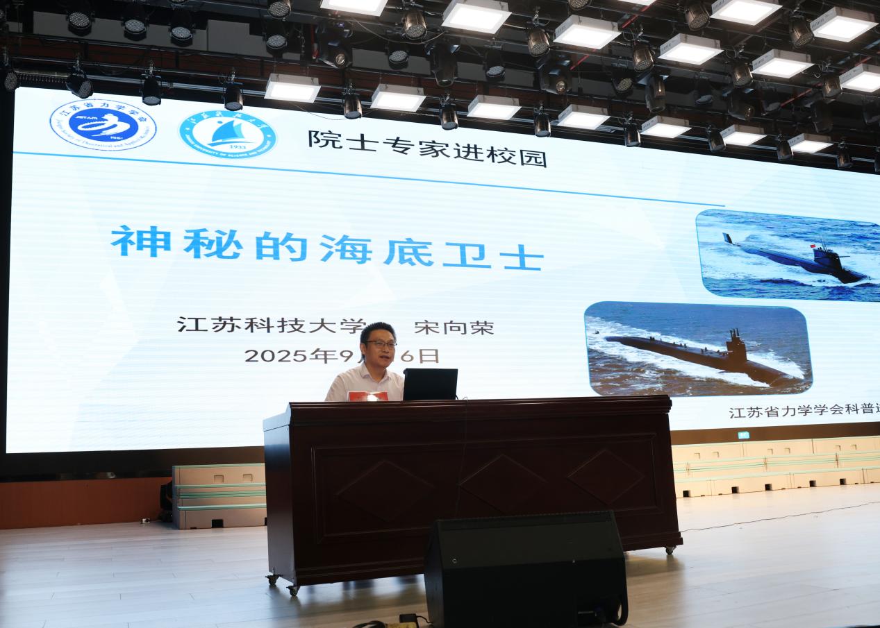 “院士专家科普进校园”专题科普讲座邀请江苏科技大学教授宋向荣作了题为《神秘的海底卫士》的专题科普讲座,以通俗易懂的语言为同学们介绍了“海底卫士”背后的力学奥秘,揭开了海底世界的神秘面纱。现场的同学们认真聆听、积极思考,在互动环节积极提问,氛围热烈,纷纷表示收获满满。