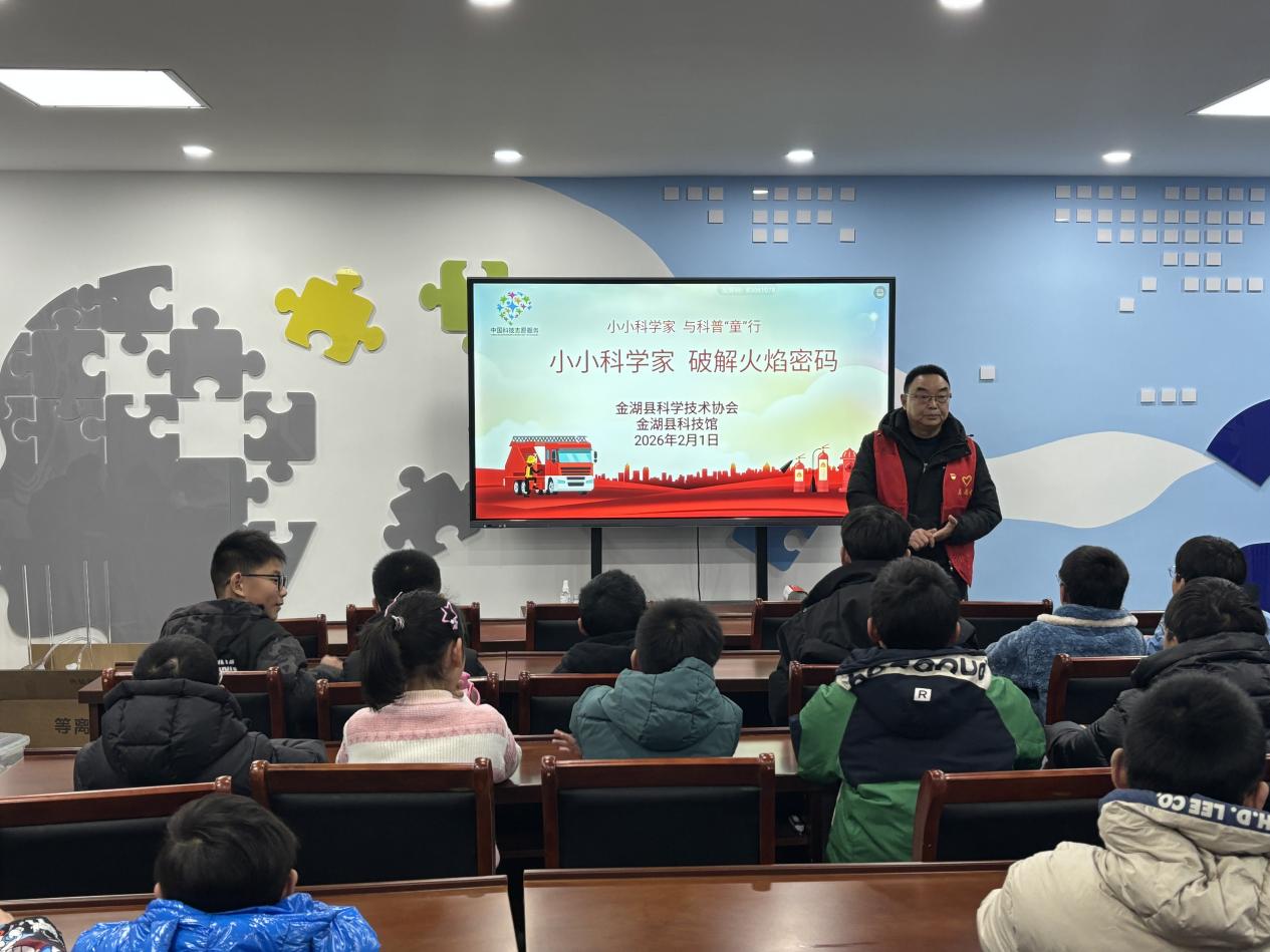 科学点亮童心,实践探索真理。为向青少年普及消防安全知识,解锁燃烧的科学奥秘,2月1日,金湖县科技馆以“小小科学家 破解火焰密码”为主题开展科普志愿服务活动,活动特邀科技工作者冀叶亮老师带领30名“小小科学家”沉浸式探索,在沉浸式实验与趣味互动中,揭开火焰背后的科学密码。