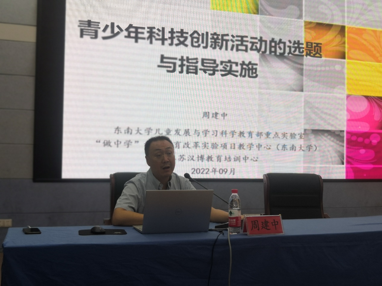 会中,周建中教授以《青少年科技创新活动的选题与指导实施》为题,从发现问题、创新思维、动手实践等方面进行解读,并就青少年科技创新活动的研究过程和基本要素进行细致讲解,同时还分享了大量优秀青少年科技创新活动获奖案例。
