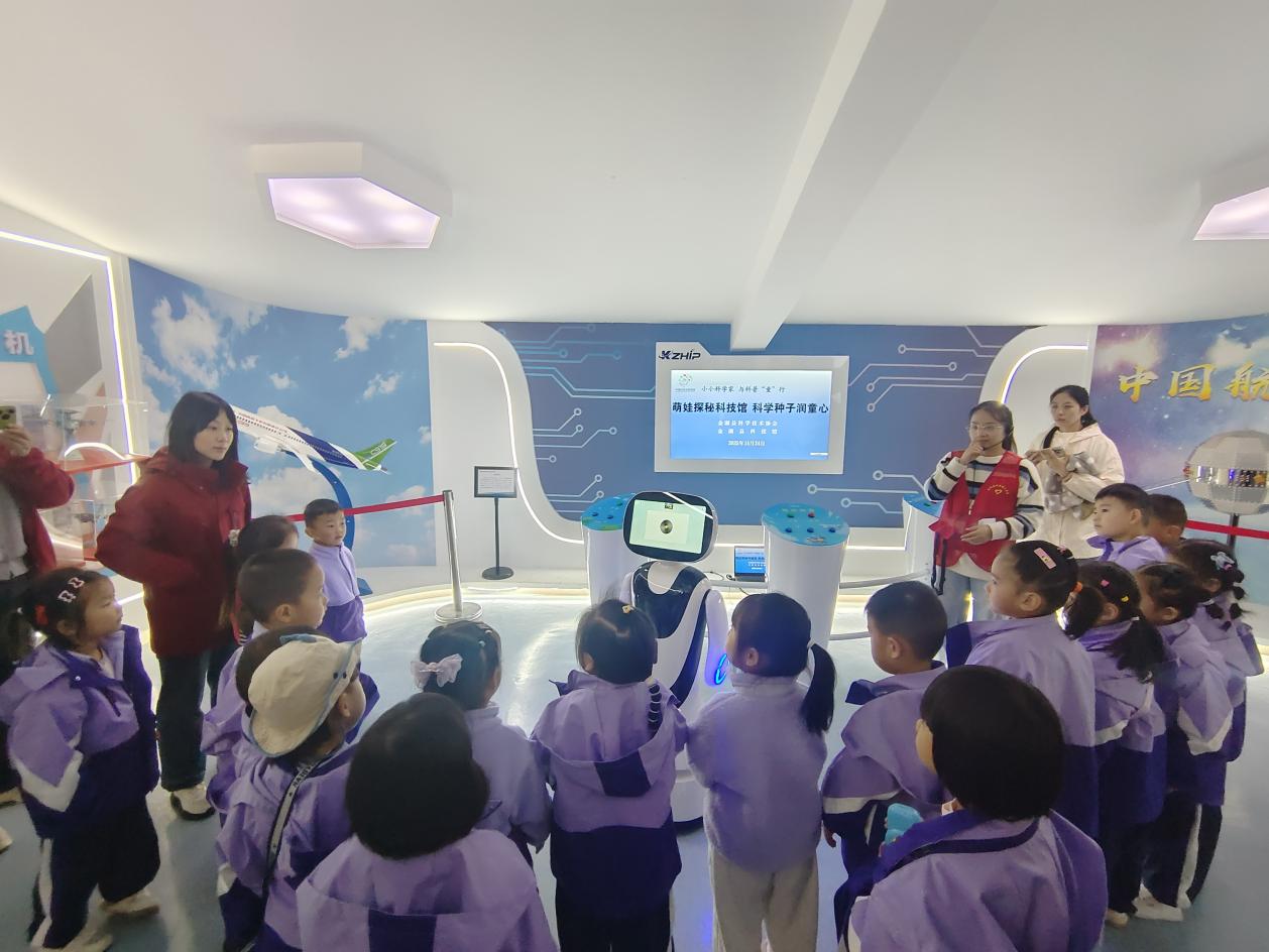 在航空航天厅里,萌娃们开启了“逐梦太空”探索旅行。专属机器人讲解员绘声绘色地介绍着东方红一号卫星、C919大型客机、歼击机系列、支/干线飞机系列、直升机模型等国之重器,从研发故事到技术突破,用童趣语言拆解专业知识。在VR体验、太阳能飞机前,萌娃们踮起脚尖触摸观察,航天梦想的种子悄然萌发。