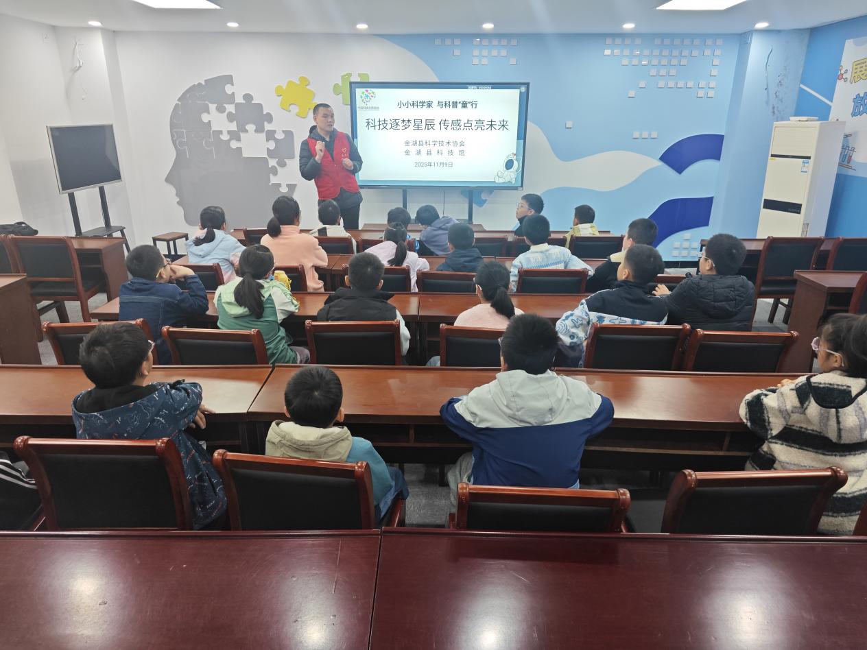 为普及传感科技知识,沉浸式感受科技魅力,点燃青少年科技创新热情,2025年11月9日,金湖县科协联合县科技馆邀请张俊耀老师开展“科技逐梦星辰 传感点亮未来”社会主义核心价值观教育活动,30名同学踊跃报名参与。