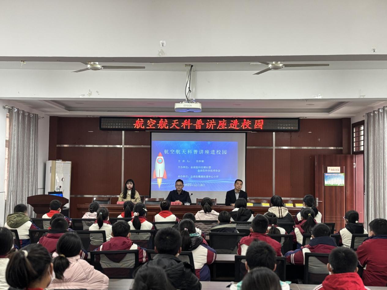 为普及航天航空知识,激发青少年科学探索热情,12月19日下午,金湖县科技镇长团联合县科协在戴楼中心小学开展“仰望星辰大海,启航科创征程”科普讲座。本次活动特邀山东大学副教授、金湖县科技镇长团团员任仲靖担任主讲嘉宾在校师生共同参与这场精彩的航天科学盛宴。出席本次讲座的还有县科协副主席雷汝兵以及戴楼中心小学的部分领导和在校师生。