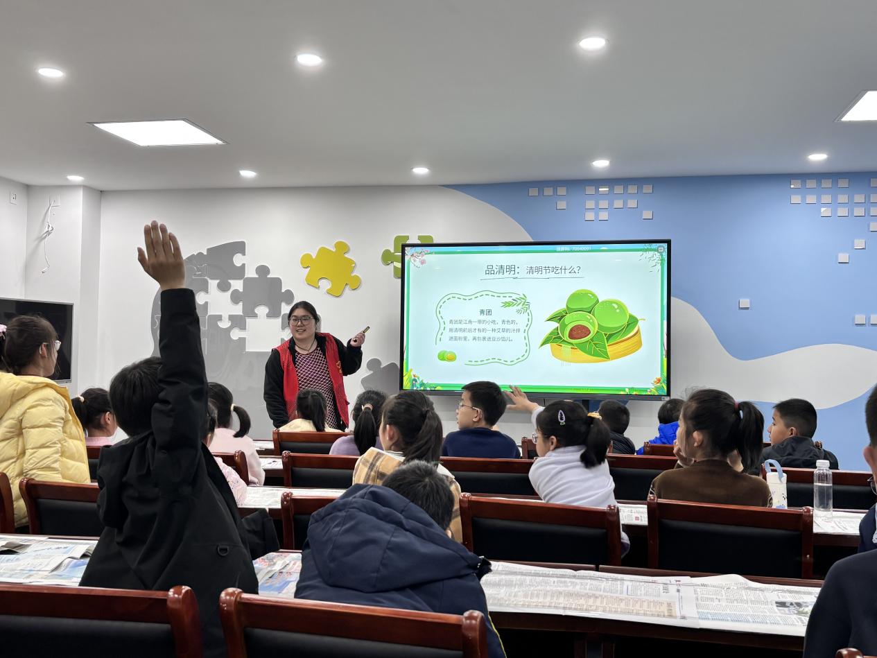 在趣味互动环节,孩子们化身小小探索家,通过问答、歌谣传唱等形式深入了解清明习俗。大家跟着老师学唱清明童谣,在朗朗上口的旋律中记住扫墓、踏青、植树、放风筝等传统习俗。
