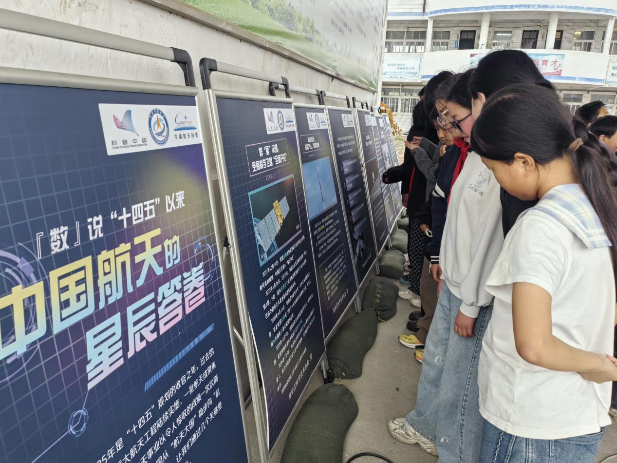 当科普大篷车“亮相”时,立刻吸引了同学们的目光,大家纷纷围拢过来,眼中满是期待与好奇。科普大篷车带来的“数说‘十四五’以来中国航天的星辰答卷”科普知识阅读巡展,展区挤满同学参与科普阅读,同学们为我国航天领域在‘十四五’取得的傲人成就感到无比自豪。在科普体验区,科技志愿者耐心讲解科普设备科学原理,同学们有序在各类科普体验设备旁,有的弯腰凑近观察奇妙的科学现象,有的小心翼翼地亲手操作、仔细观察,在轻松氛围中直观接触科学知识,在动手实践中直观感受科学原理的魅力,现场不时传来阵阵惊叹声。